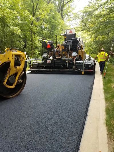 Paving is an option when the asphalt deterioration is beyond repair or when creating a new asphalt area. When repairing, we begin by cleaning and removing debris from the area before applying a tack coat. The tack coat helps to insure a bond between the old and new layer. Hot asphalt is then installed to the specified depth and compacted with vibratory plate and/or a multi ton vibratory roller. Hot asphalt is a mixture of sand and gravel blended with asphalt cement that is spread and compacted to a smooth recyclable road surface.